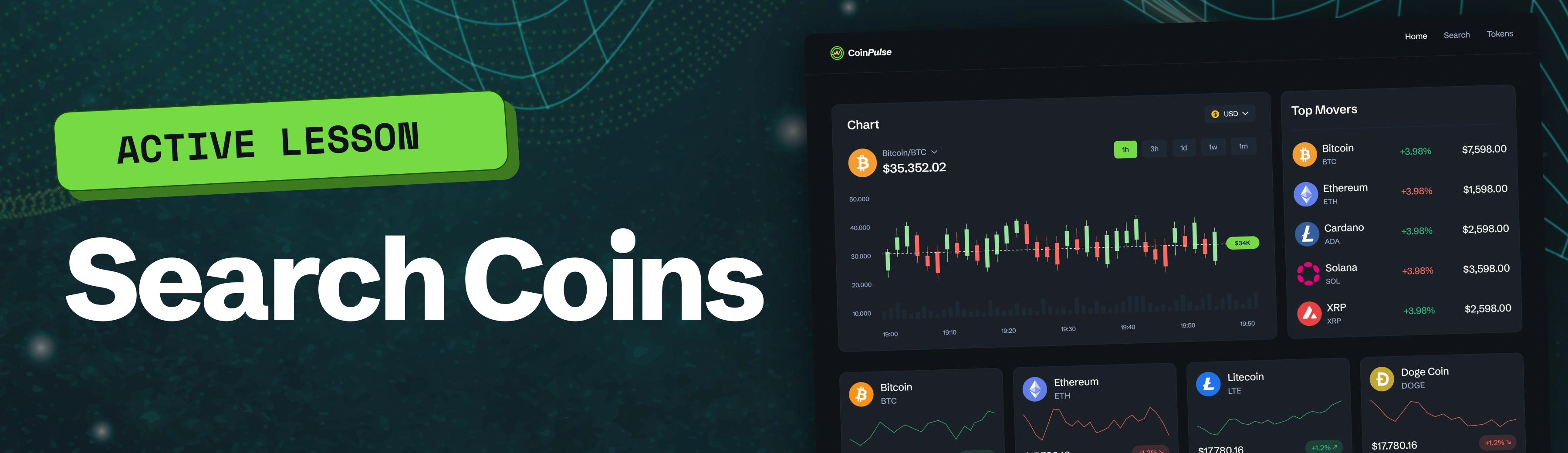 I have provided a helper function called searchCoins in video kit (lib/coingecko.actions.ts). You don't need to write this from scratch, but you must understand how it works to use it effectively.